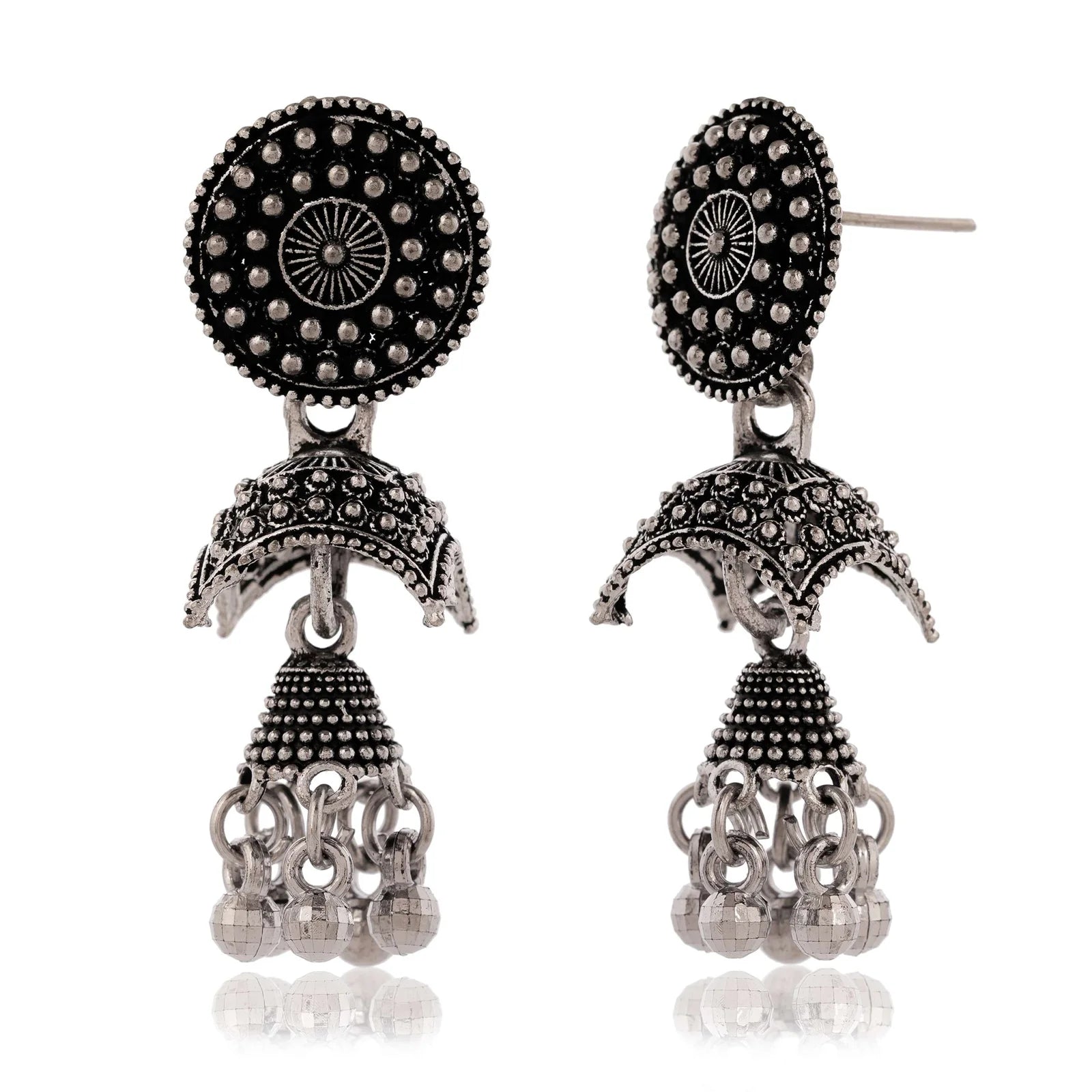 Discover the allure of traditional Indian jewelry with these stunning, detailed oxidized silver Jhumka earrings.