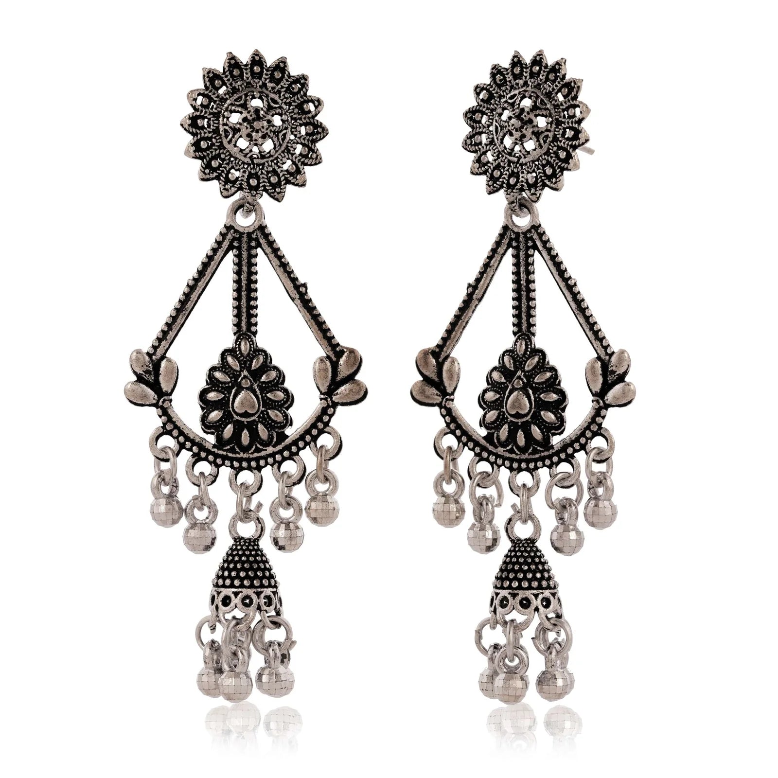 Style: Ethnic, Tribal, Jhumka, Statement Dangler, Oxidized Silver