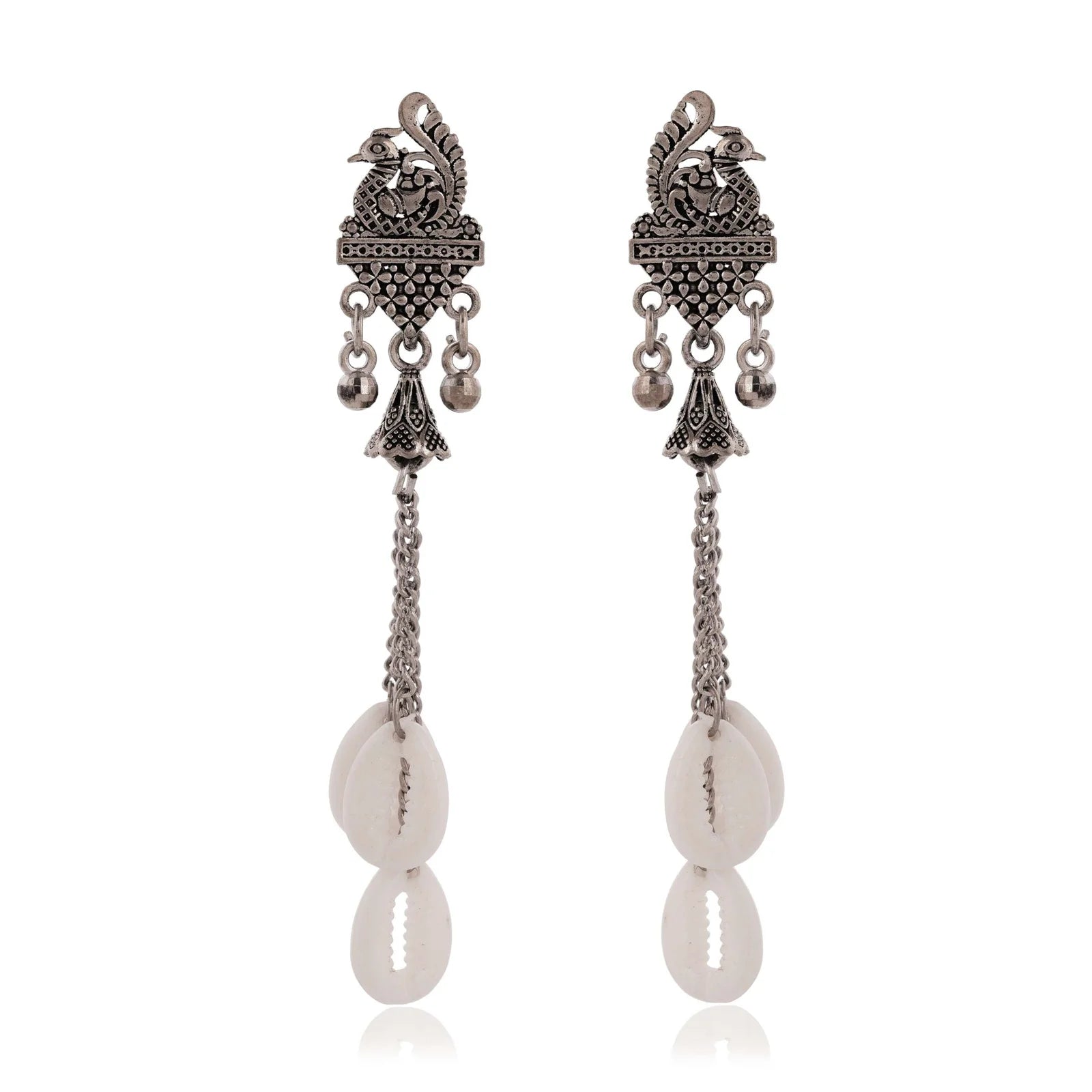 Make an unforgettable statement with these long, captivating oxidized silver earrings that blend tribal artistry with organic coastal charm.