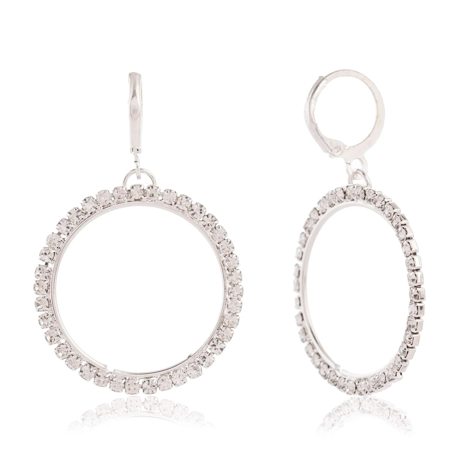 Nothing captures attention quite like a classic hoop silhouette lined entirely with brilliant stones. These earrings feature an uninterrupted row of dazzling, clear crystals set into a sleek silver-toned metal frame, providing continuous fire and reflection.