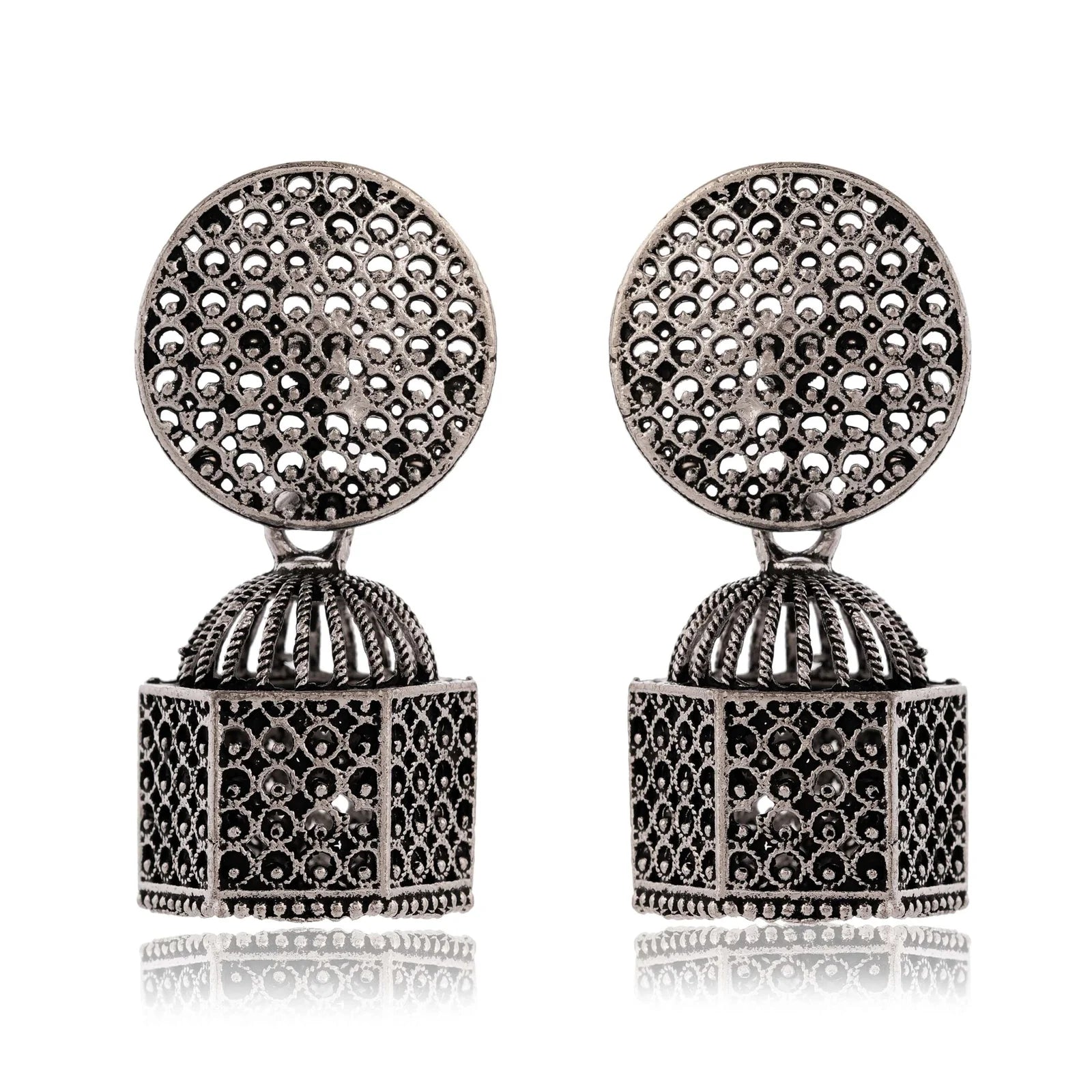 Discover the artistry of intricate metalwork with these stunning, vintage-inspired oxidized silver earrings.
