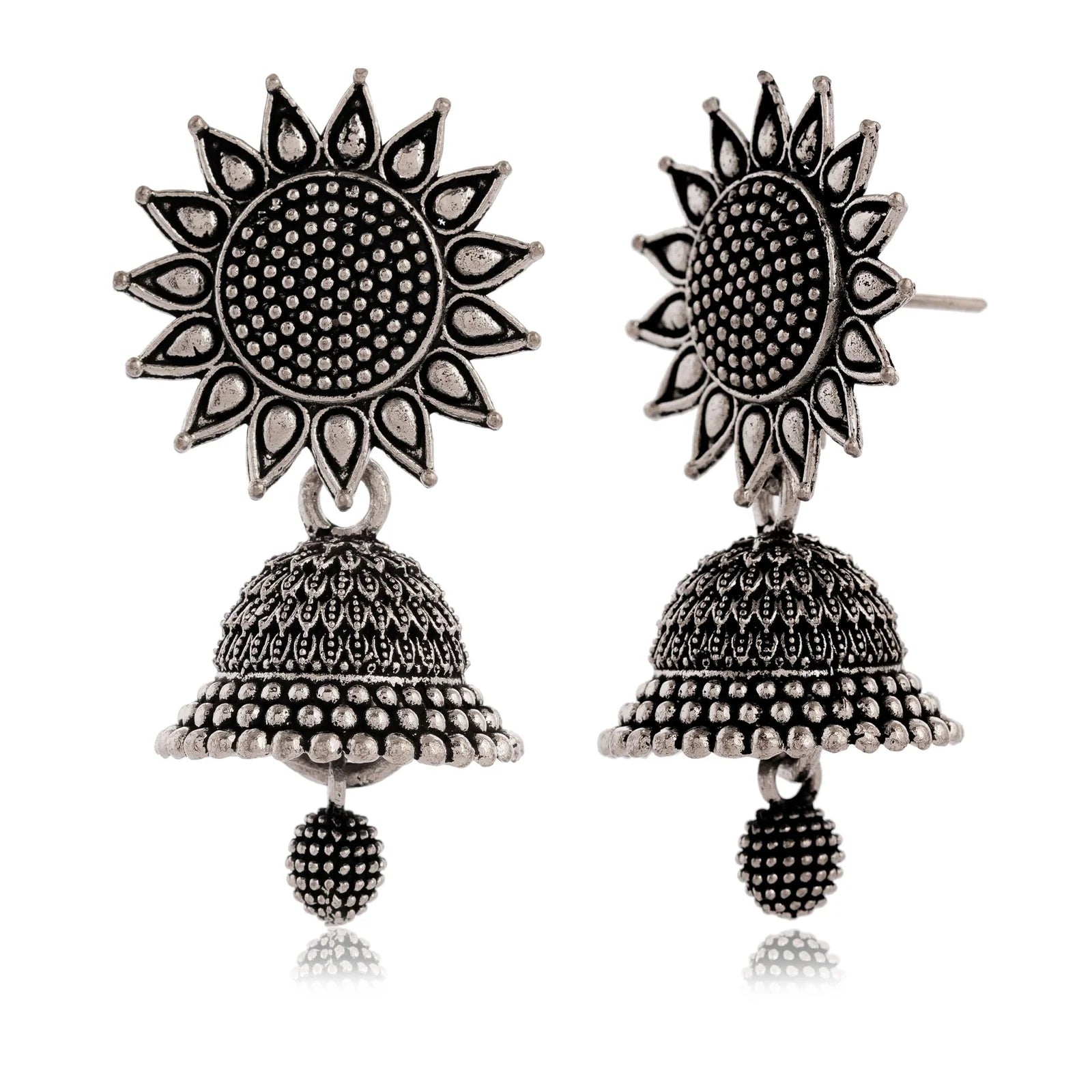 Style: Ethnic, Tribal, Jhumka, Statement Stud, Oxidized Silver