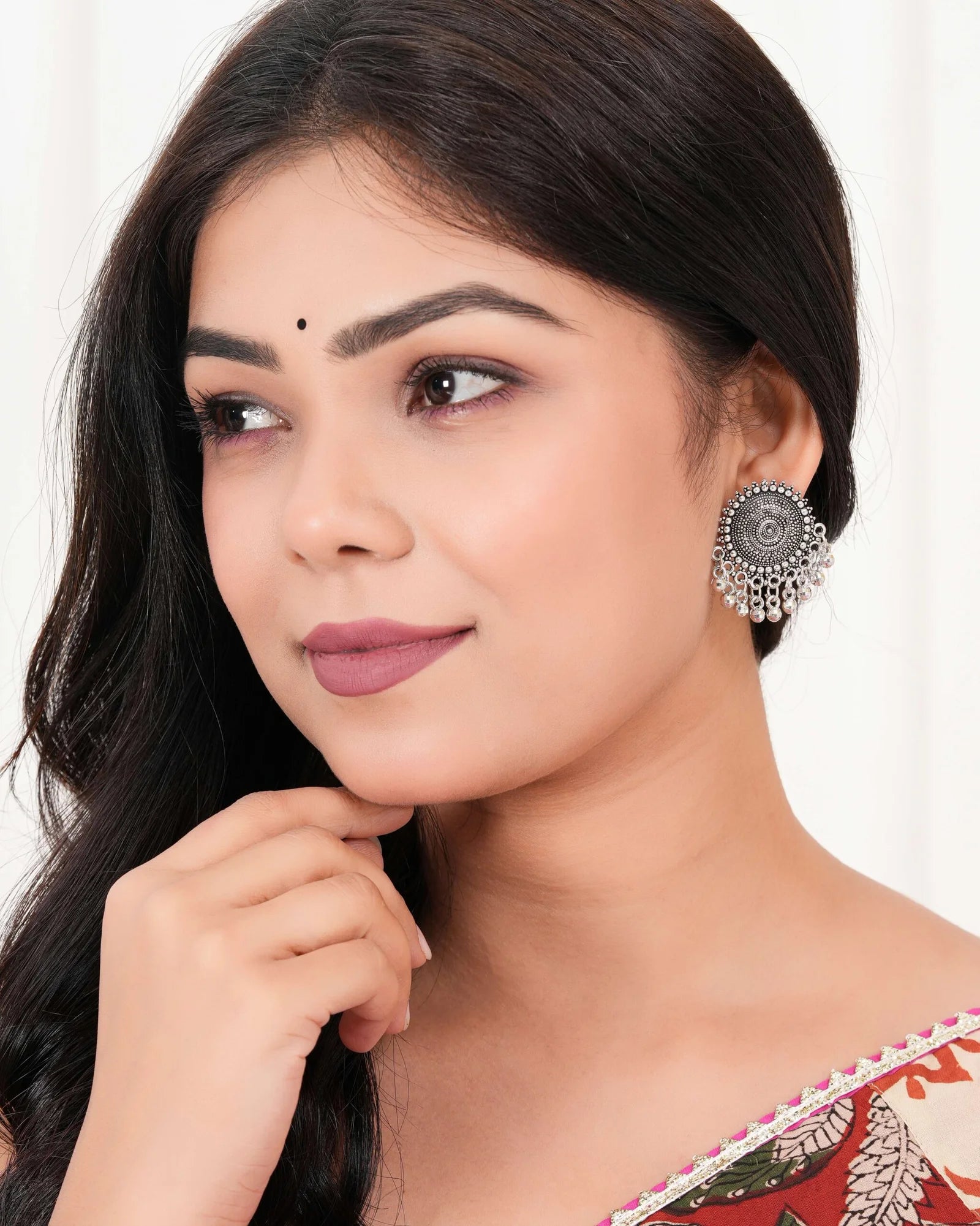 Style: Ethnic, Tribal, Bohemian, Statement Stud, Oxidized Silver