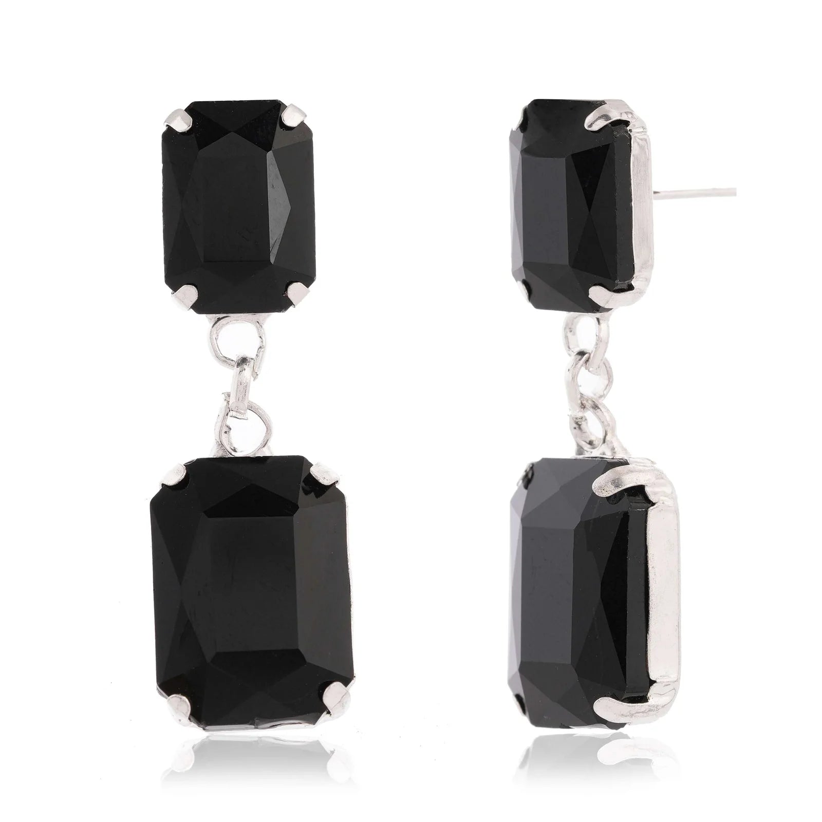 Embrace timeless sophistication with these elegant two-tier drop earrings featuring deep black geometric stones.
